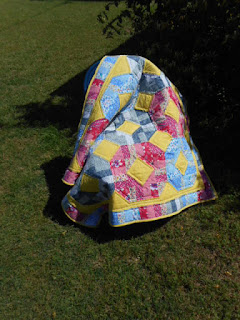 Quilt N Bee's block is vertical with a quaint house, flowers and a picket fence with a quilt flapping in the breeze. I didn't buy the kit as it was almost $20 but they had went so far as to cut out the flower shapes - I should have bought it to save myself time. Sighssss ...